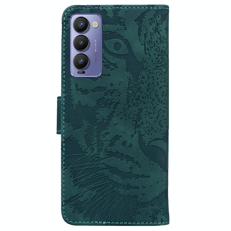 Θήκη τηλεφώνου από δέρμα με οριζόντιο άνοιγμα και ανάγλυφο σχέδιο τίγρης για Tecno Camon 18 / 18P (Ροζ)