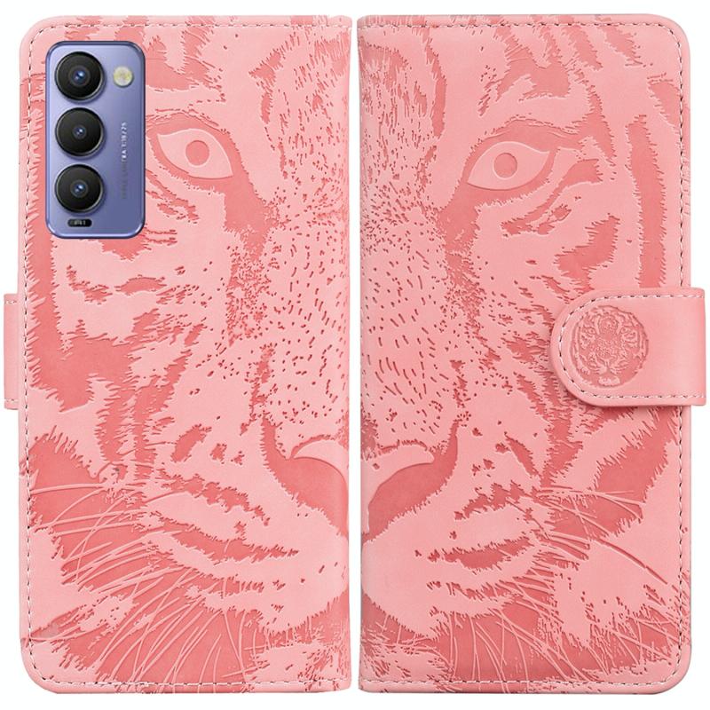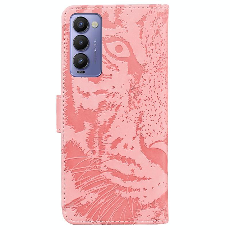 Θήκη τηλεφώνου από δέρμα με οριζόντιο άνοιγμα και ανάγλυφο σχέδιο τίγρης για Tecno Camon 18 / 18P (Ροζ)