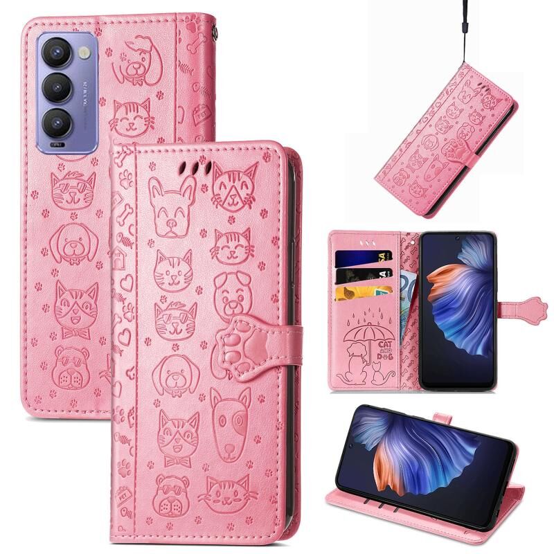 Θήκη τηλεφώνου από δέρμα με ανάγλυφο σχέδιο γάτας και σκύλου για Tecno Camon 18 (Μπλε)