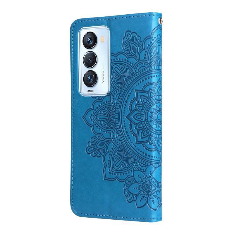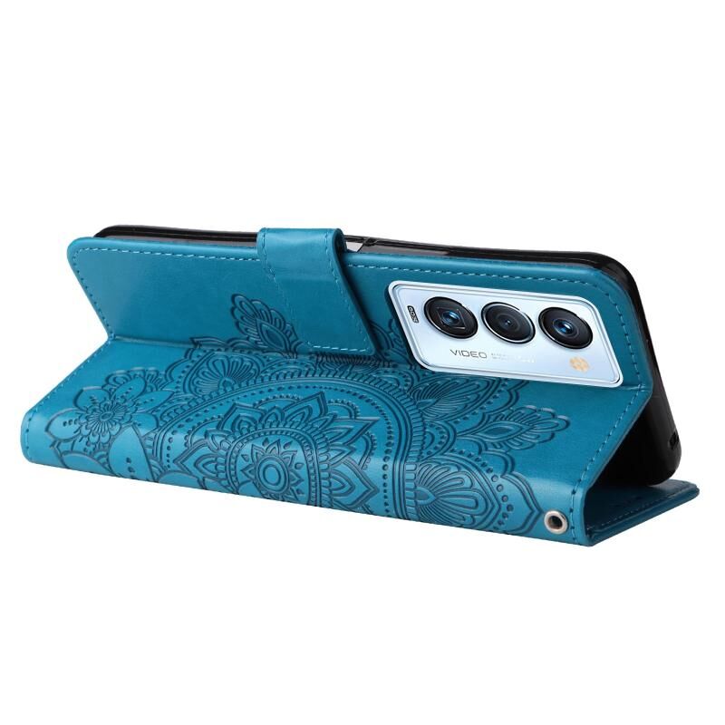 Για Tecno Camon 18 Premier 7-πέταλο λουλούδια ανάγλυφο Flip υπόθεση τηλεφώνου δέρμα (μπλε)