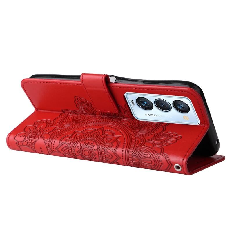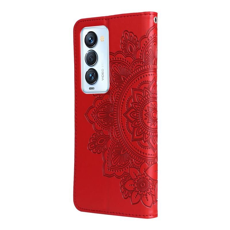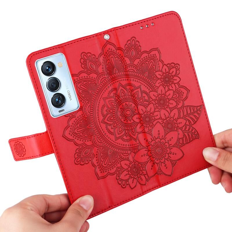 Για Tecno Camon 18 Premier 7-πέταλο λουλούδια ανάγλυφο Flip υπόθεση τηλεφώνου δέρμα (κόκκινο)