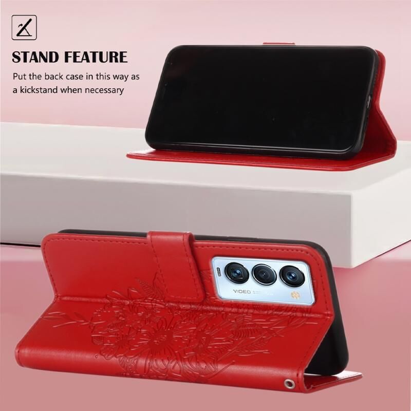 Θήκη τηλεφώνου από δέρμα με ανάγλυφο σχέδιο πεταλούδας για Tecno Camon 18 Premier (Γκρι)
