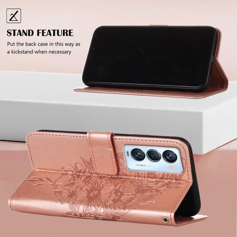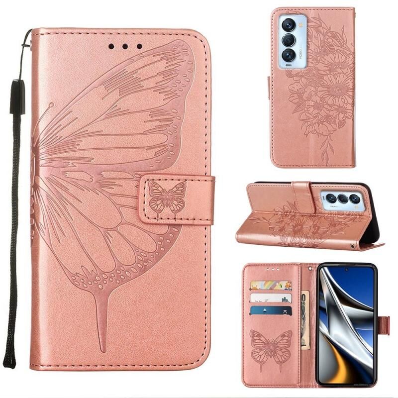 Θήκη τηλεφώνου από δέρμα με ανάγλυφο σχέδιο πεταλούδας για Tecno Camon 18 Premier (Γκρι)