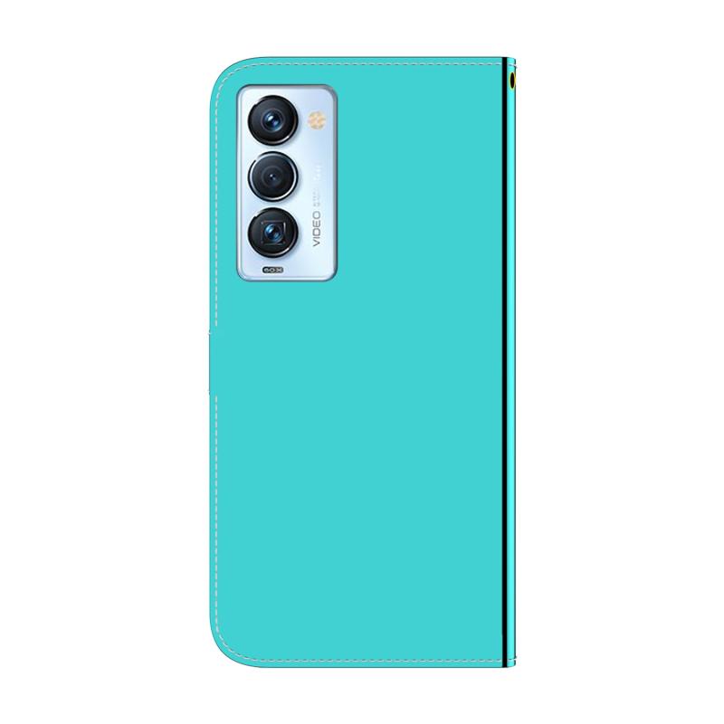 Θήκη τηλεφώνου από δέρμα με οριζόντιο άνοιγμα και απομίμηση καθρεπτικής επιφάνειας για Tecno Camon 18 Premier (Μωβ)