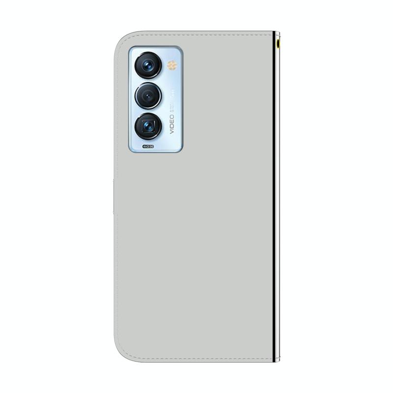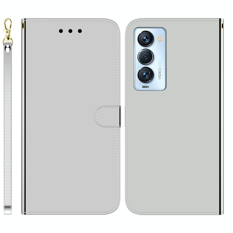 Θήκη τηλεφώνου από δέρμα με οριζόντιο άνοιγμα και απομίμηση καθρεπτικής επιφάνειας για Tecno Camon 18 Premier (Μωβ)