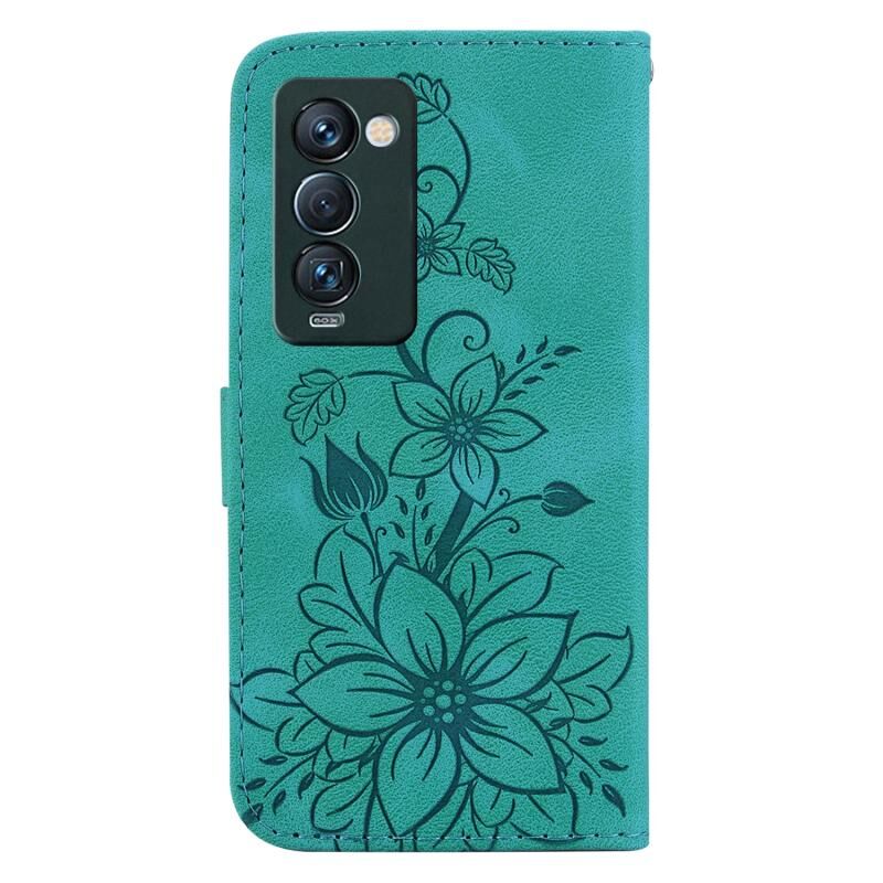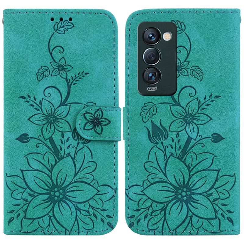 Θήκη τηλεφώνου από δέρμα με ανάγλυφο λουλουδιού Lily για Tecno Camon 18 Premier (Πράσινο)