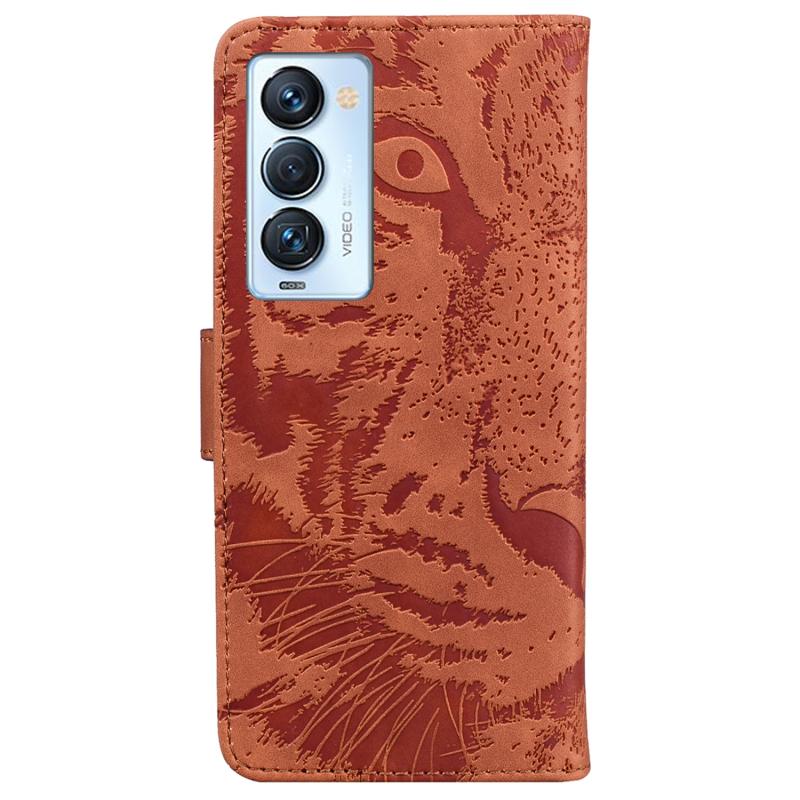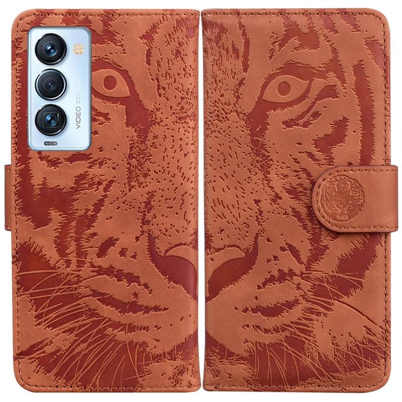 Θήκη τηλεφώνου από δέρμα με οριζόντιο άνοιγμα για Tecno Camon 18 Premier με μοτίβο ανάγλυφου τίγρη (Ροζ)