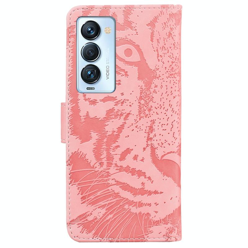 Θήκη τηλεφώνου από δέρμα με οριζόντιο άνοιγμα για Tecno Camon 18 Premier με μοτίβο ανάγλυφου τίγρη (Ροζ)