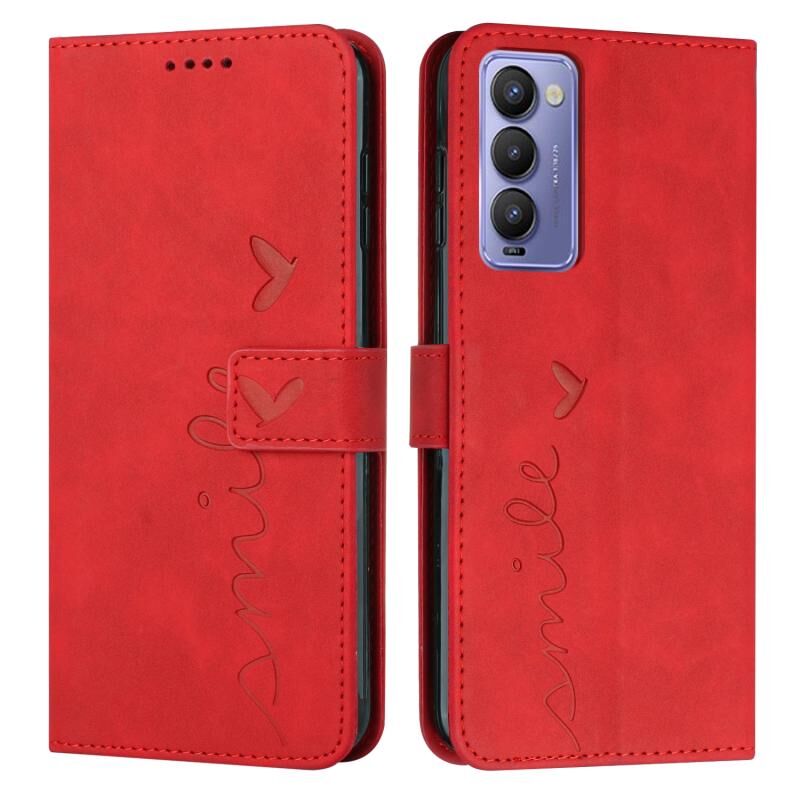Για Tecno Camon 18 δέρμα αίσθηση καρδιά μοτίβο δερμάτινη θήκη τηλεφώνου (κόκκινο)