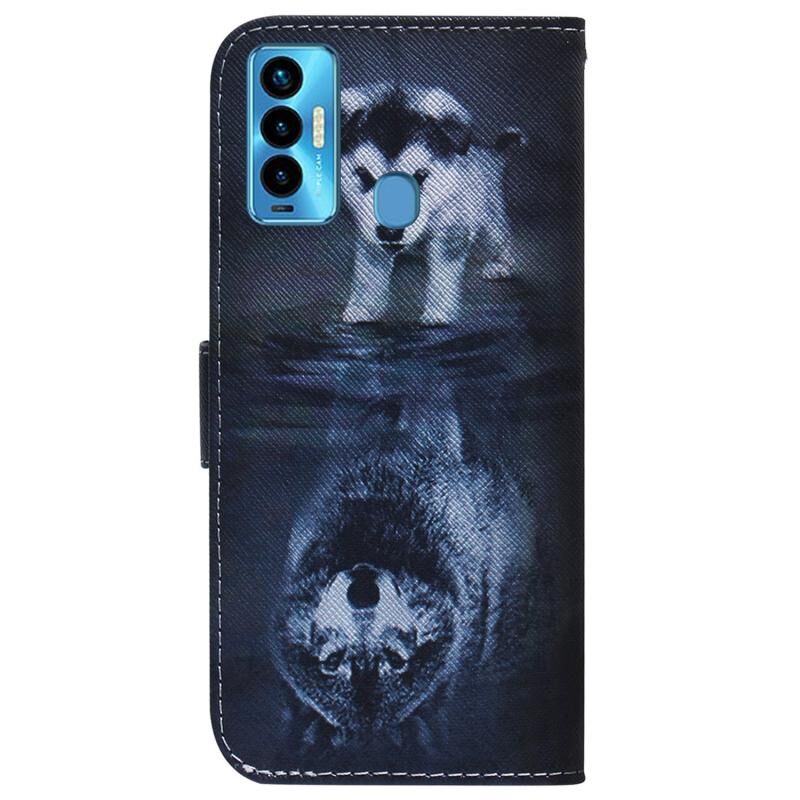 Θήκη τηλεφώνου από δέρμα με έγχρωμο σχέδιο για Tecno Camon 18i (Λύκος και Σκύλος)