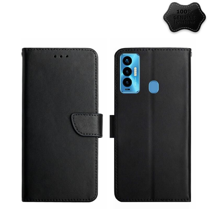 Θήκη τηλεφώνου Tecno Camon 18i, αυθεντικό δέρμα, ανθεκτική στα δακτυλικά αποτυπώματα, οριζόντια, flip (Μαύρο)