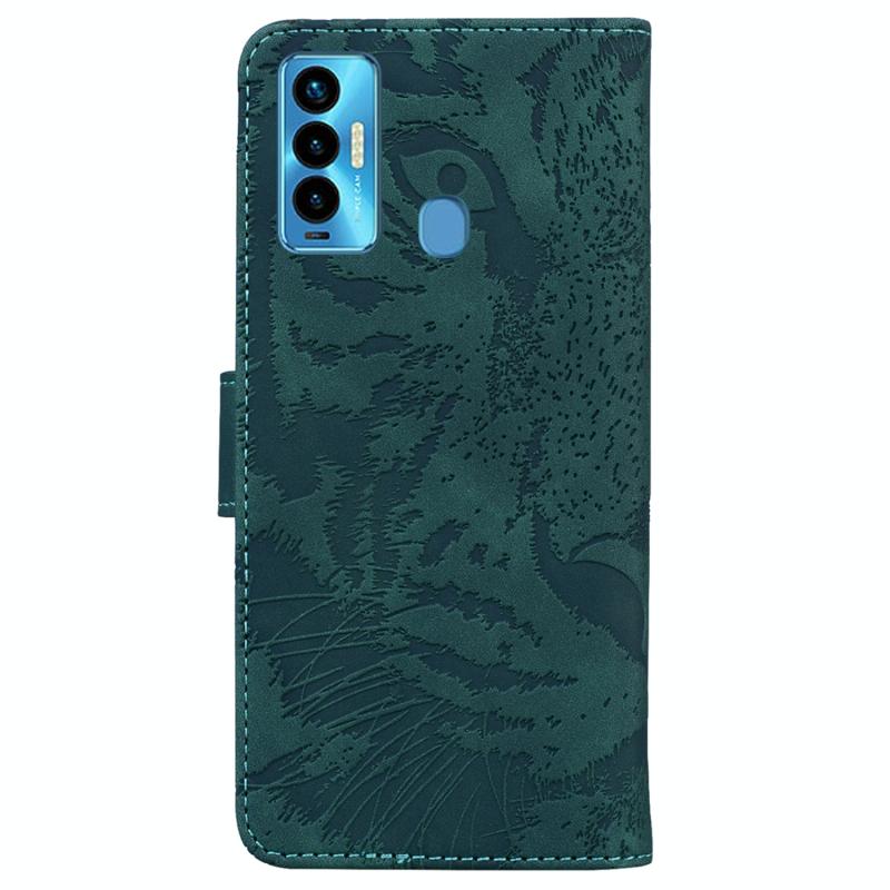 Θήκη τηλεφώνου από δέρμα με οριζόντιο άνοιγμα για Tecno Camon 18i με ανάγλυφο σχέδιο τίγρης (πράσινο)