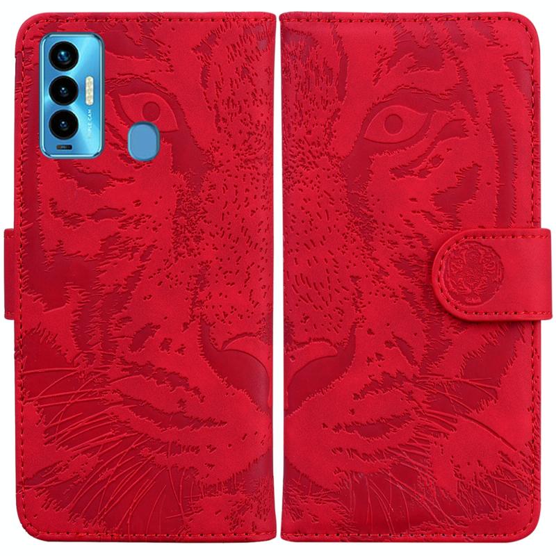 Θήκη τηλεφώνου από δέρμα με οριζόντιο άνοιγμα για Tecno Camon 18i με ανάγλυφο σχέδιο τίγρης (Ροζ)