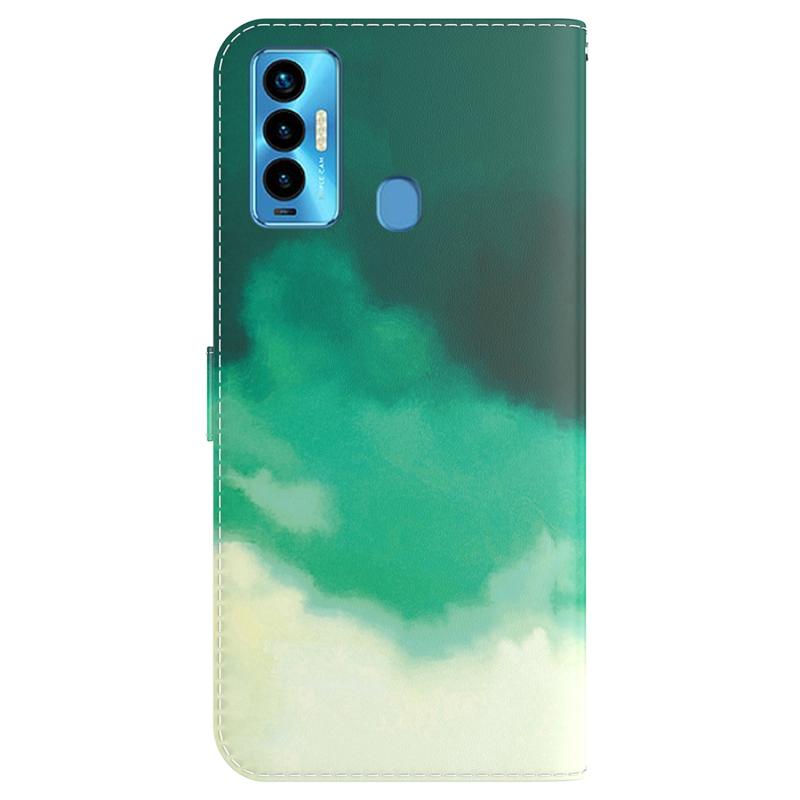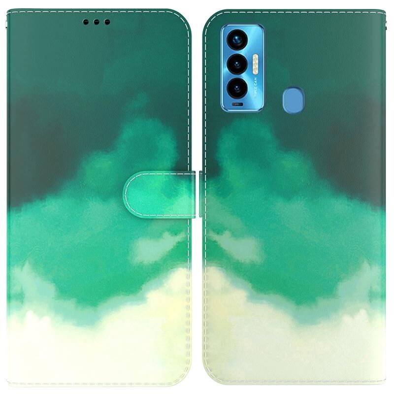 Θήκη τηλεφώνου δερμάτινη, οριζόντια αναδιπλούμενη, με σχέδιο ακουαρέλας για Tecno Camon 18i (Κυανό πράσινο)