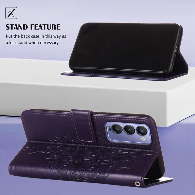 Θήκη τηλεφώνου από δέρμα με ανάγλυφο σχέδιο πεταλούδας για Tecno Camon 18P / 18 (Γκρι)