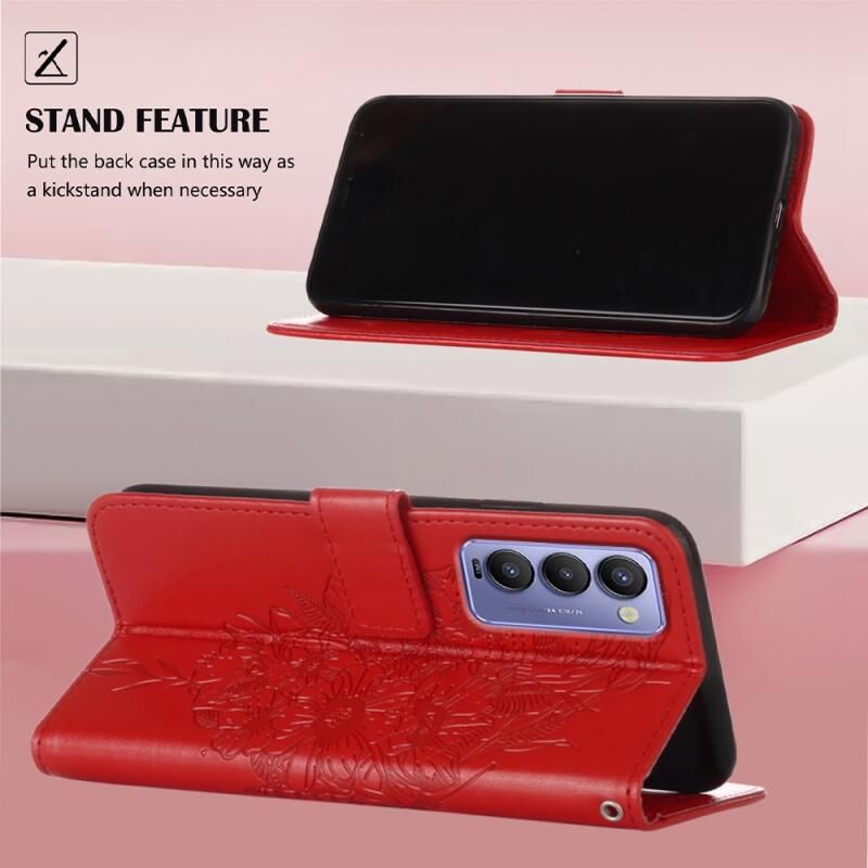 Θήκη τηλεφώνου από δέρμα με ανάγλυφο σχέδιο πεταλούδας για Tecno Camon 18P / 18 (Γκρι)