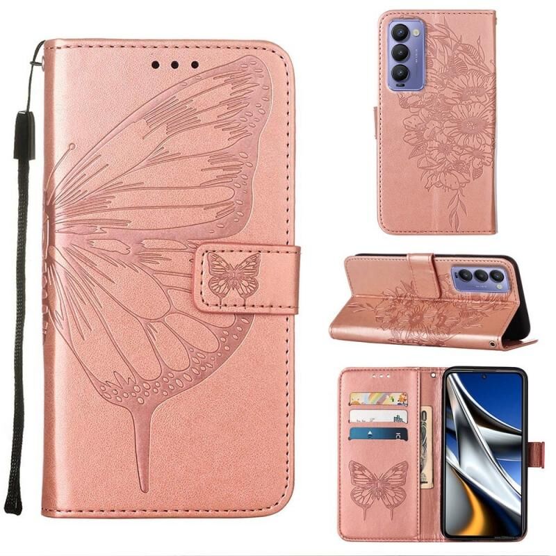 Θήκη τηλεφώνου από δέρμα με ανάγλυφο σχέδιο πεταλούδας για Tecno Camon 18P / 18 (Γκρι)
