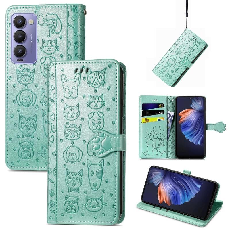 Θήκη τηλεφώνου από δέρμα με ανάγλυφο σχέδιο γάτας και σκύλου για Tecno Camon 18P (Μπλε)