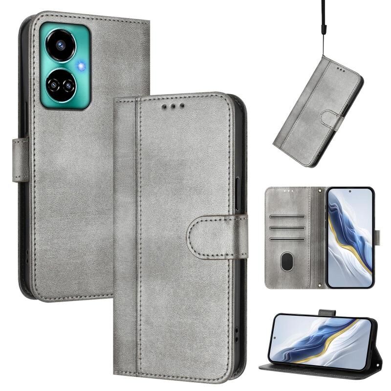 For Tecno Camon 19 / 19 Pro 5G Line Splicing Buckle Retro Leather Phone Case(Grey)