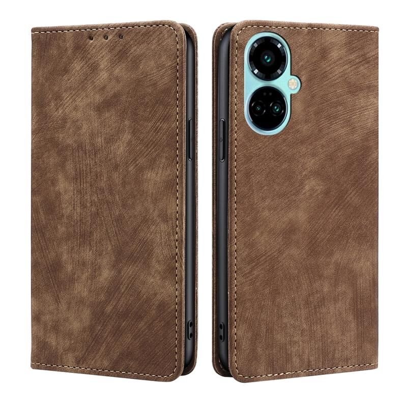 Για Tecno Camon 19 / 19 Pro RFID Anti-theft Brush Μαγνητική δερμάτινη θήκη τηλεφώνου (καφέ)
