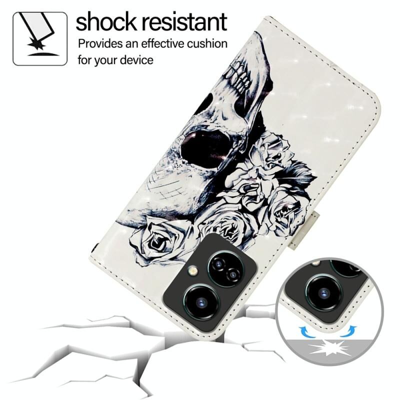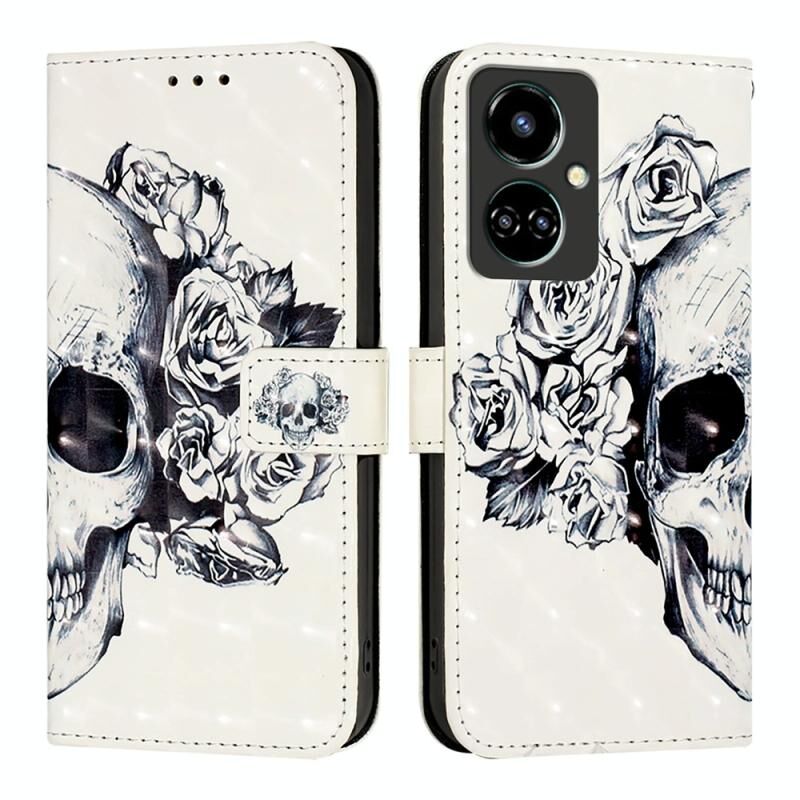 Θήκη τηλεφώνου από δέρμα με οριζόντιο άνοιγμα και τρισδιάστατη ζωγραφική για Tecno Camon 19 (Κρανίο)