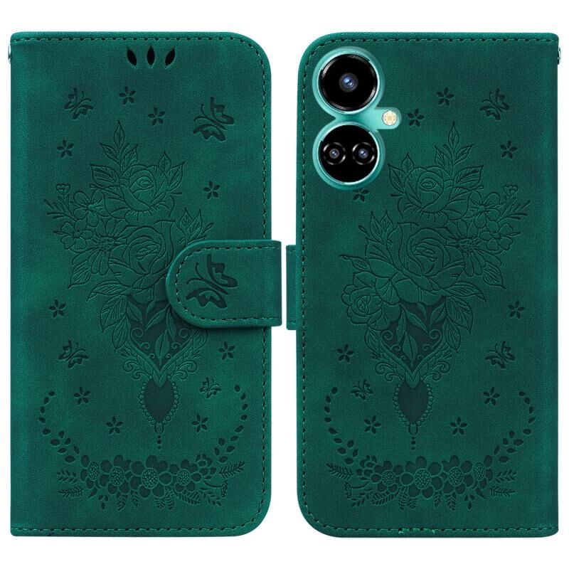 Θήκη τηλεφώνου από ανάγλυφο δέρμα για Tecno Camon 19 Butterfly Rose (Ροζ)
