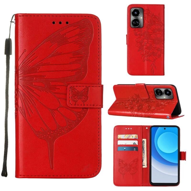Θήκη τηλεφώνου από δέρμα με ανάγλυφο σχέδιο πεταλούδας για Tecno Camon 19 (Μπλε)