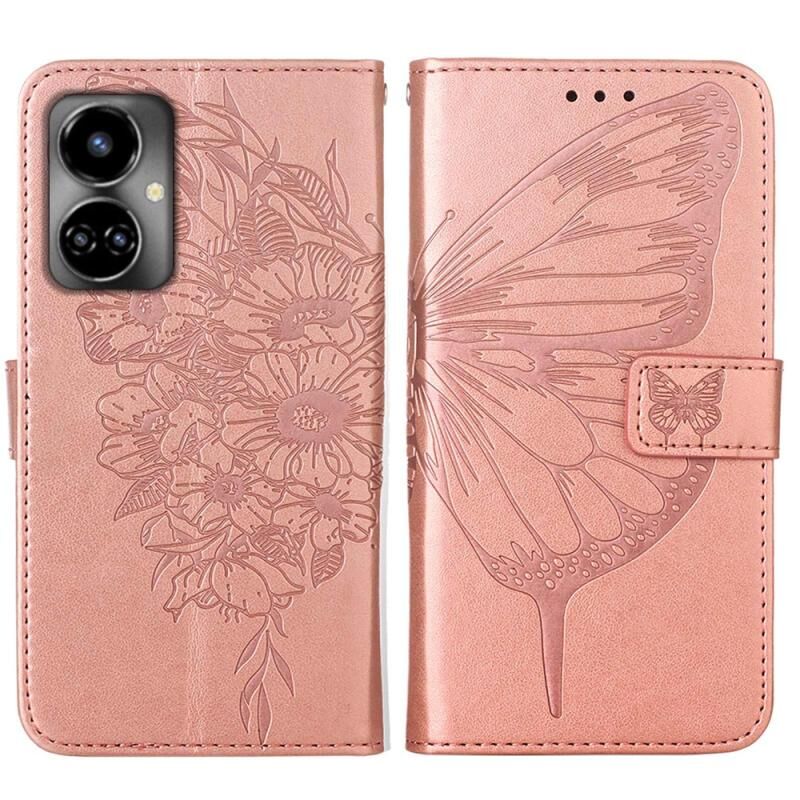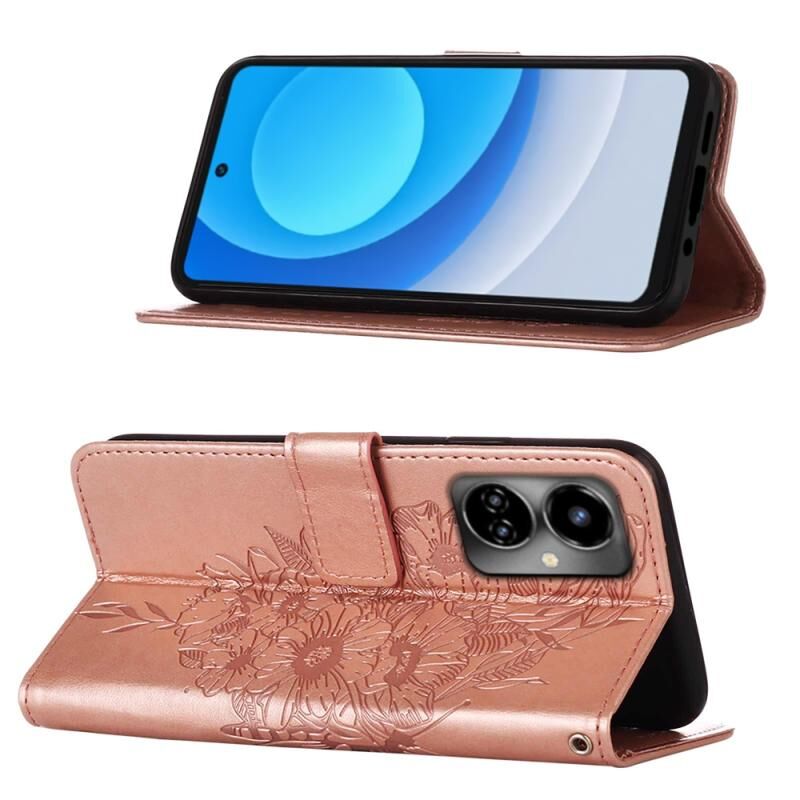 Θήκη τηλεφώνου από δέρμα με ανάγλυφο σχέδιο πεταλούδας για Tecno Camon 19 (Μπλε)