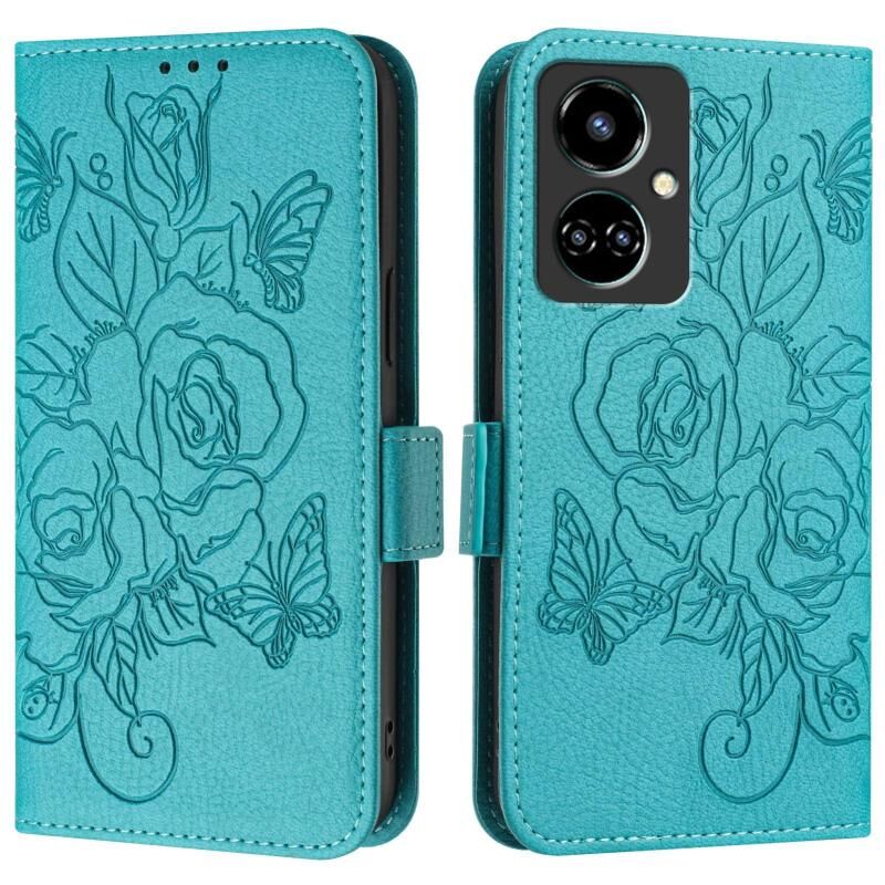 For Tecno Camon 19 Embossed Rose RFID Anti-theft Leather Phone Case(Light Blue)