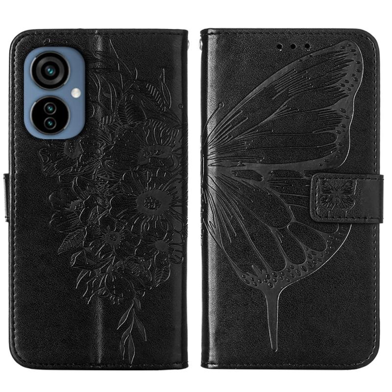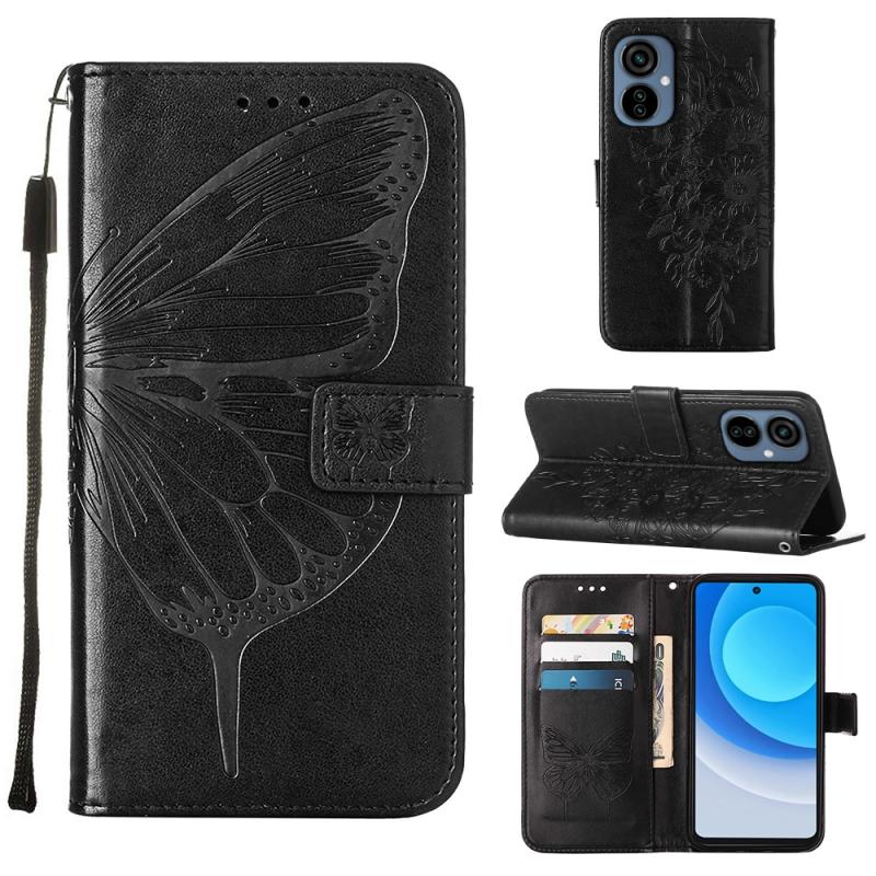 For Tecno Camon 19 NEO Embossed Butterfly Flip Leather Phone Case(Black)