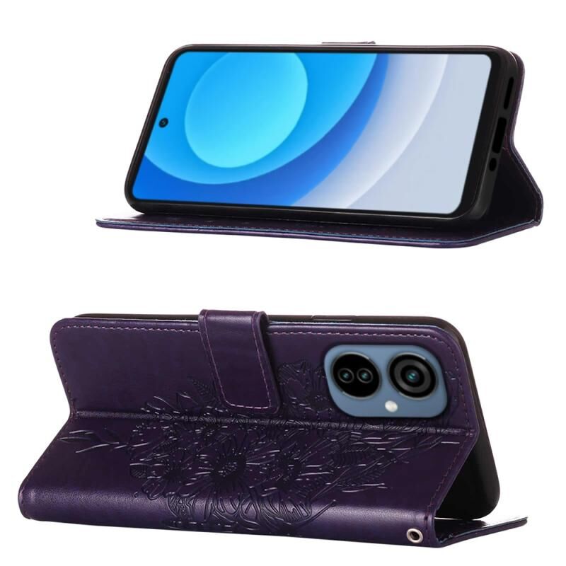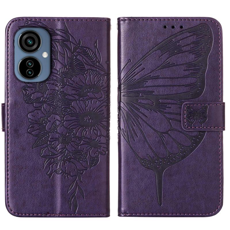 Θήκη τηλεφώνου από δέρμα με ανάγλυφο σχέδιο πεταλούδας για Tecno Camon 19 NEO (Γκρι)
