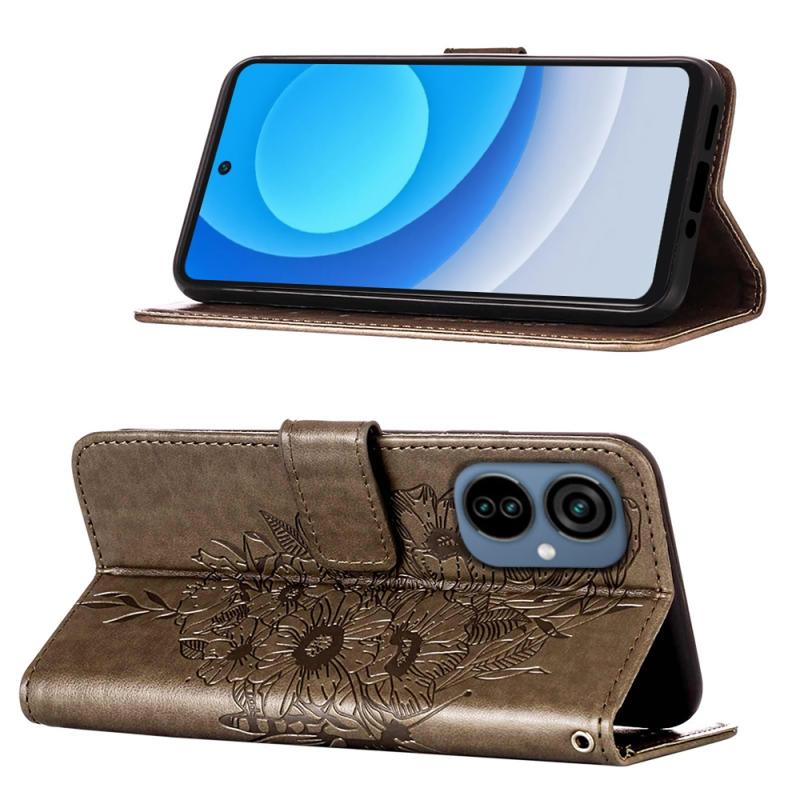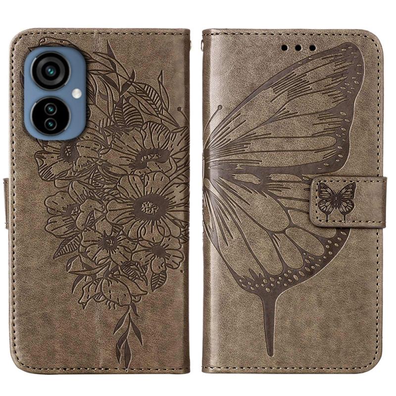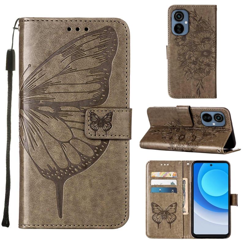 Θήκη τηλεφώνου από δέρμα με ανάγλυφο σχέδιο πεταλούδας για Tecno Camon 19 NEO (Γκρι)