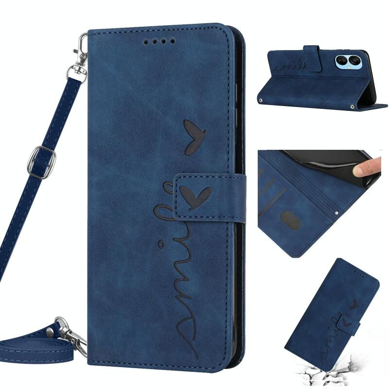 Για Tecno Camon 19 Neo δέρμα αίσθηση καρδιά μοτίβο δερμάτινη θήκη τηλεφώνου με κορδόνι (μπλε)