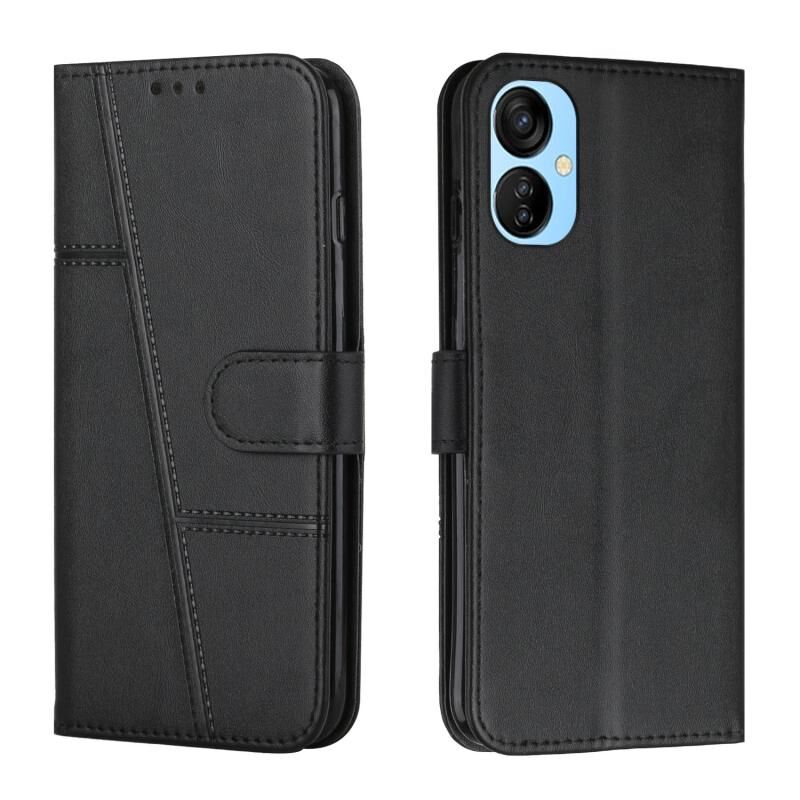 Για Tecno Camon 19 Neo ραφή μοσχάρι υφή πόρπη δερμάτινη θήκη τηλεφώνου (μαύρο)
