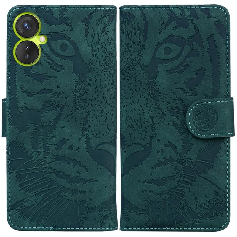 Θήκη τηλεφώνου δερμάτινη οριζόντιας αναδίπλωσης για Tecno Camon 19 Neo με ανάγλυφο σχέδιο τίγρης (Καφέ)