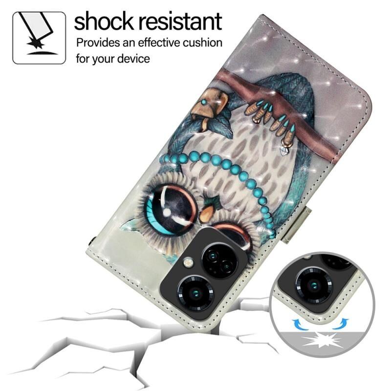 Θήκη τηλεφώνου από δέρμα με οριζόντιο άνοιγμα και τρισδιάστατη ζωγραφική για Tecno Camon 19 Pro 5G (Γκρι κουκουβάγια)