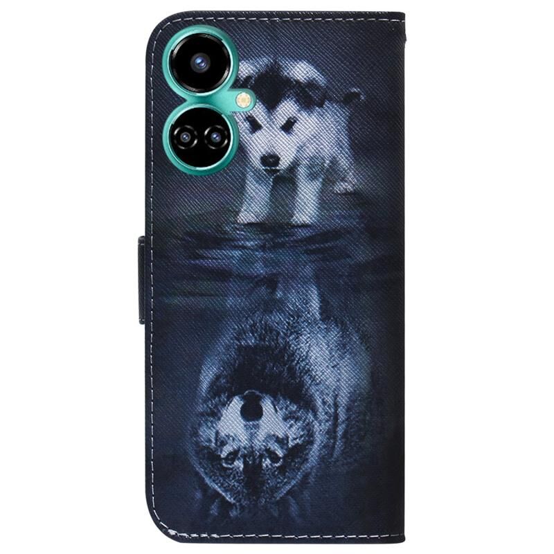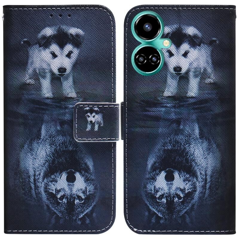 For Tecno Camon 19 Pro 5G Coloured Drawing Leather Phone Case(Wolf and Dog)