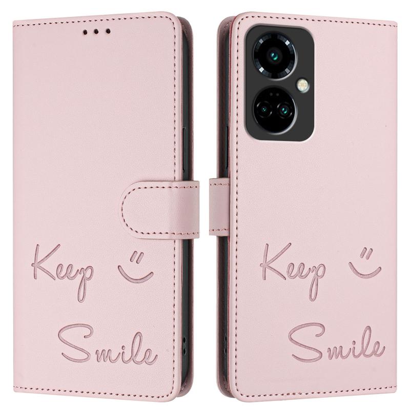 For Tecno Camon 19 Pro 5G Smile Embossing RFID Leather Phone Case(Pink)