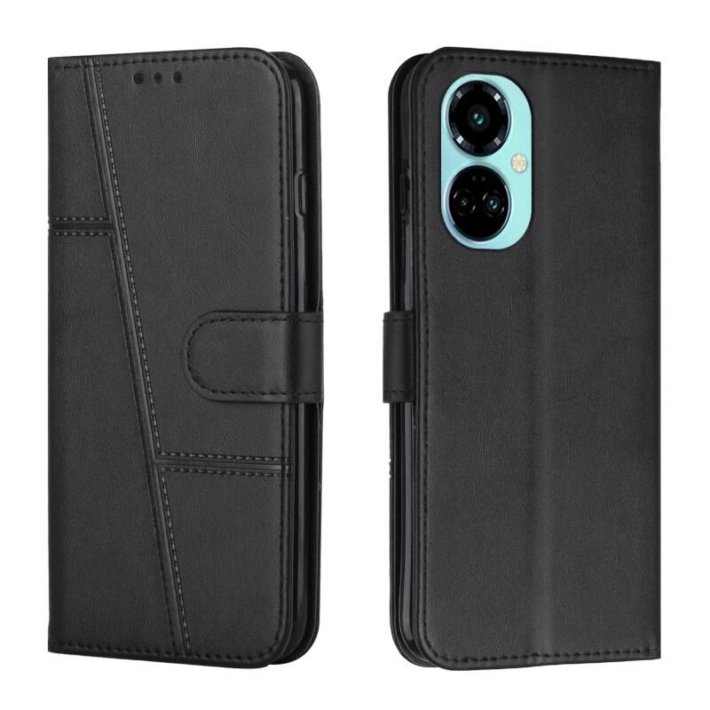 Για Tecno Camon 19 Pro 5G ραφή μοσχάρι υφή πόρπη δερμάτινη θήκη τηλεφώνου (μαύρο)
