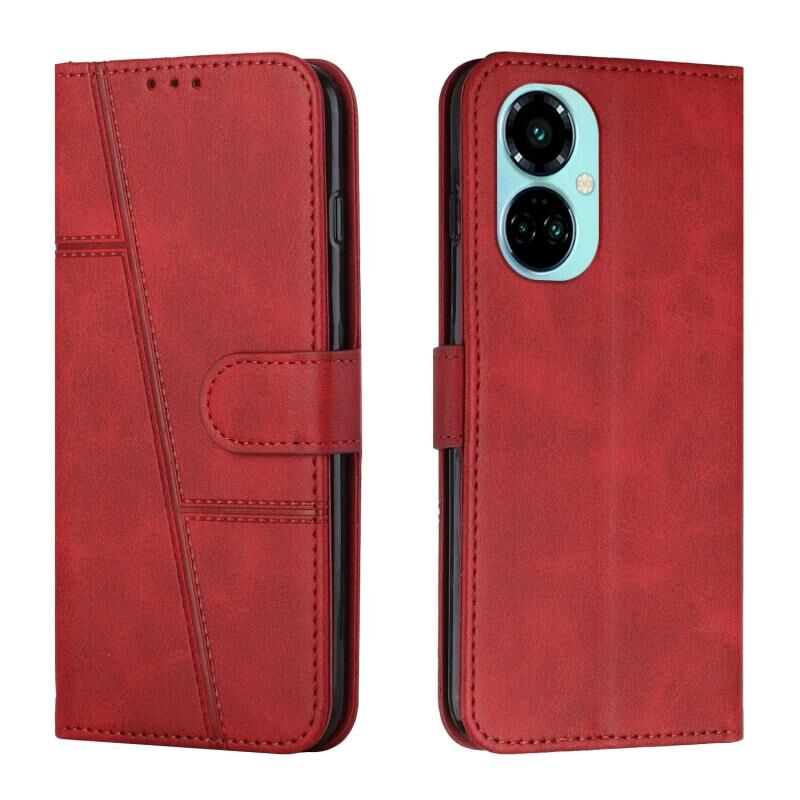 Για Tecno Camon 19 Pro 5G Stitching μοσχάρι υφή Πόρπη δερμάτινη θήκη τηλεφώνου (κόκκινο)