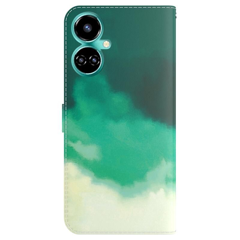 Για Tecno Camon 19 Pro 5G νερομπογιά μοτίβο οριζόντια Flip δέρμα υπόθεση τηλεφώνου (Cyan Green)