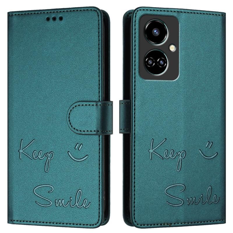 For Tecno Camon 19 Smile Embossing RFID Leather Phone Case(Peacock Green)