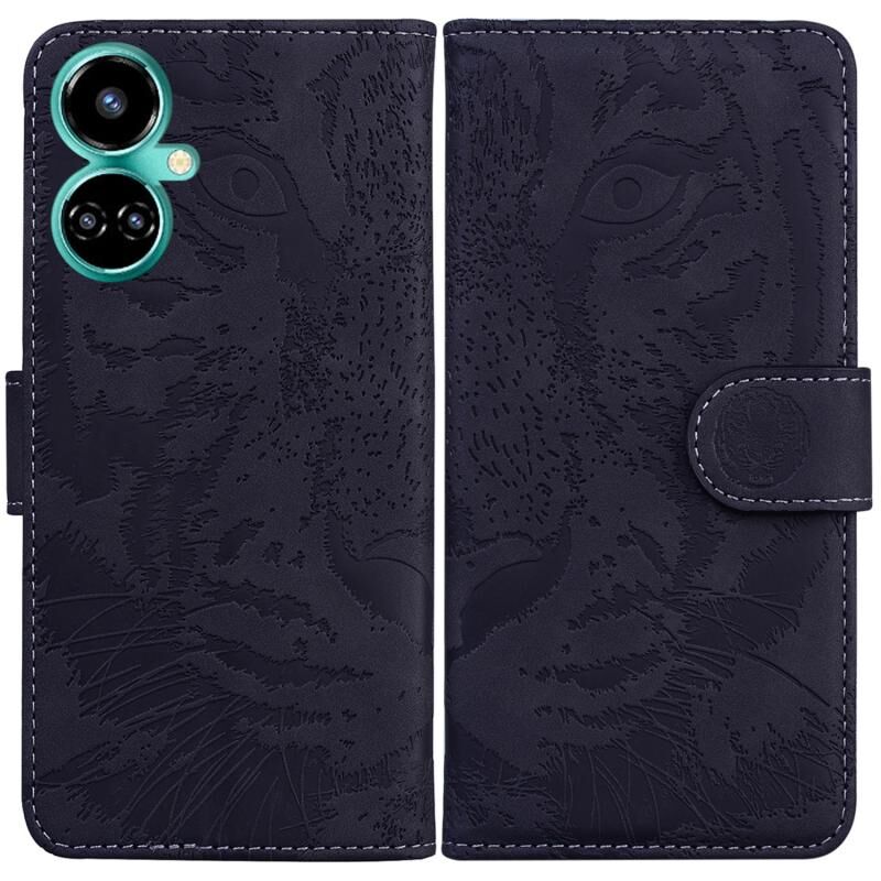 Θήκη τηλεφώνου δερμάτινη οριζόντιας αναδίπλωσης για Tecno Camon 19 Tiger με ανάγλυφο σχέδιο (Μαύρο)