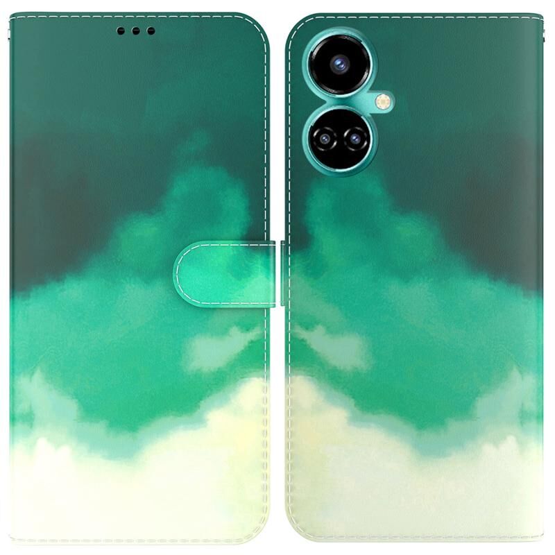 Για Tecno Camon 19 νερομπογιά μοτίβο οριζόντια Flip υπόθεση τηλεφώνου δέρμα (Cyan Green)