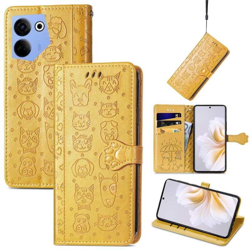 Θήκη τηλεφώνου από δέρμα με ανάγλυφο σχέδιο γάτας και σκύλου για Tecno Camon 20 / 20 Pro 4G (Μπλε)