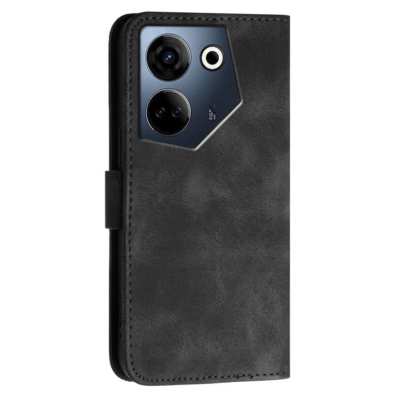 For Tecno Camon 20 / 20 Pro 4G Grid Butterfly Embossed Pattern Leather Phone Case with Lanyard(Black)