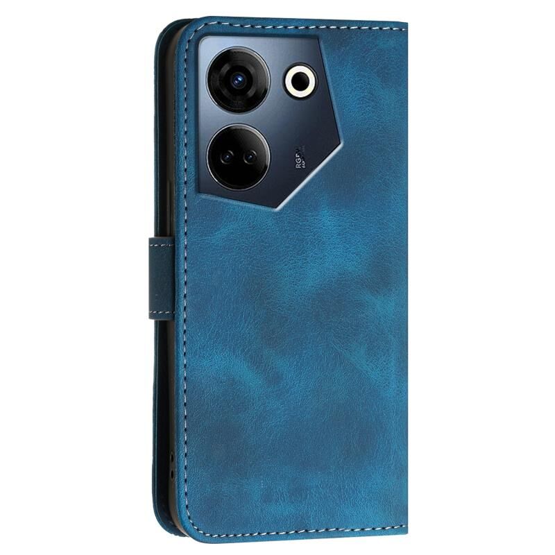 For Tecno Camon 20 / 20 Pro 4G Grid Butterfly Embossed Pattern Leather Phone Case with Lanyard(Dark Blue)