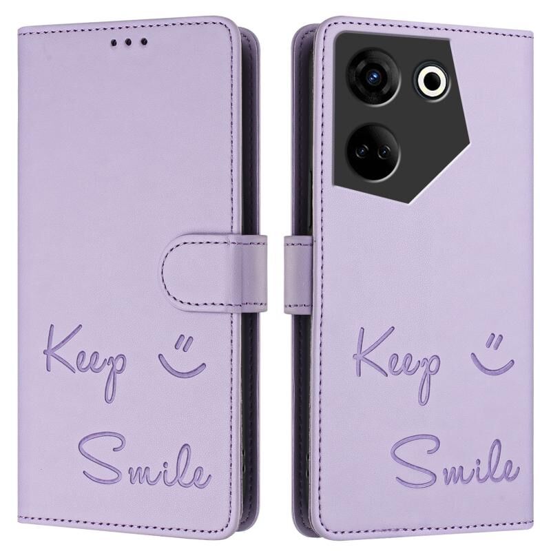 For Tecno Camon 20 / 20 Pro 4G Smile Embossing RFID Leather Phone Case(Light Purple)