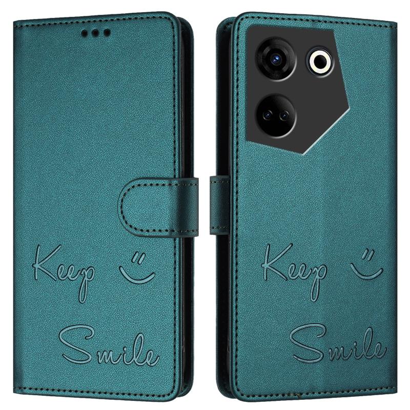 For Tecno Camon 20 / 20 Pro 4G Smile Embossing RFID Leather Phone Case(Peacock Green)
