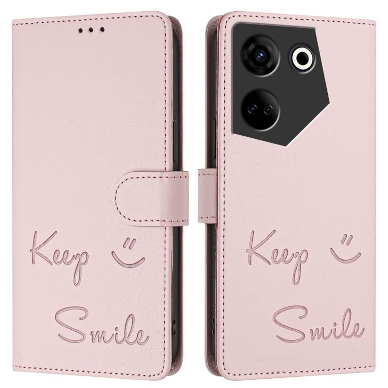 For Tecno Camon 20 / 20 Pro 4G Smile Embossing RFID Leather Phone Case(Pink)